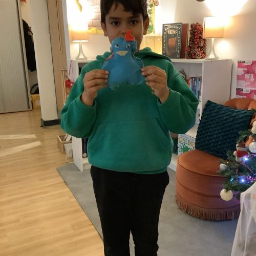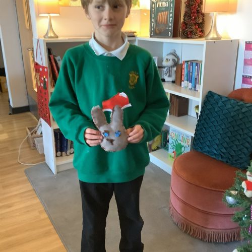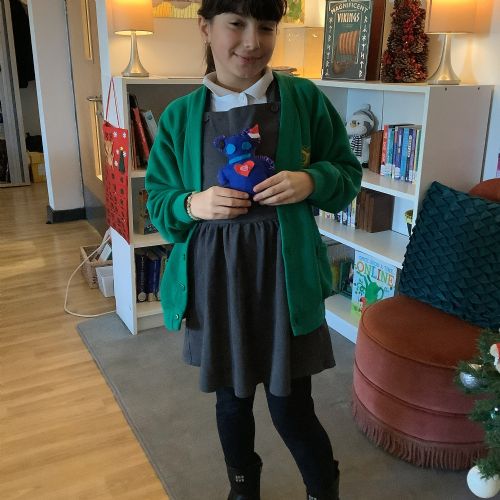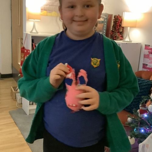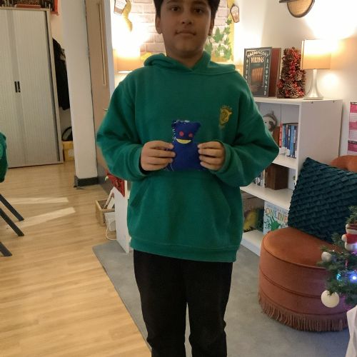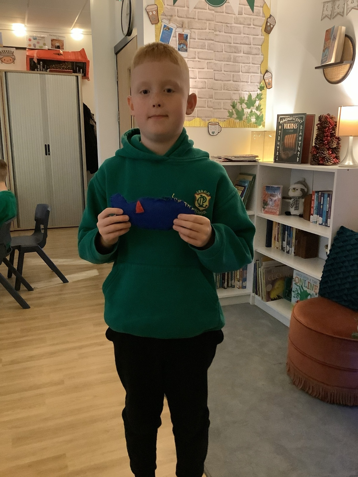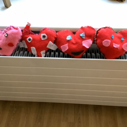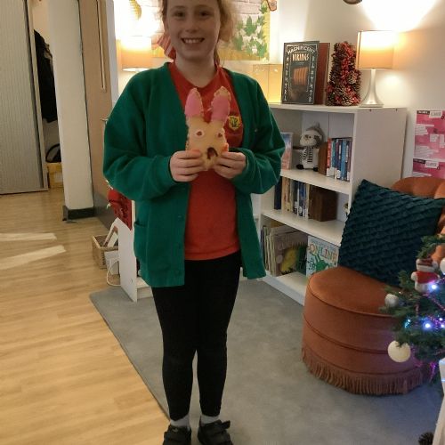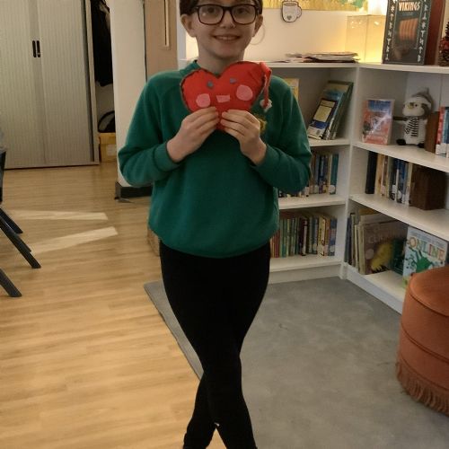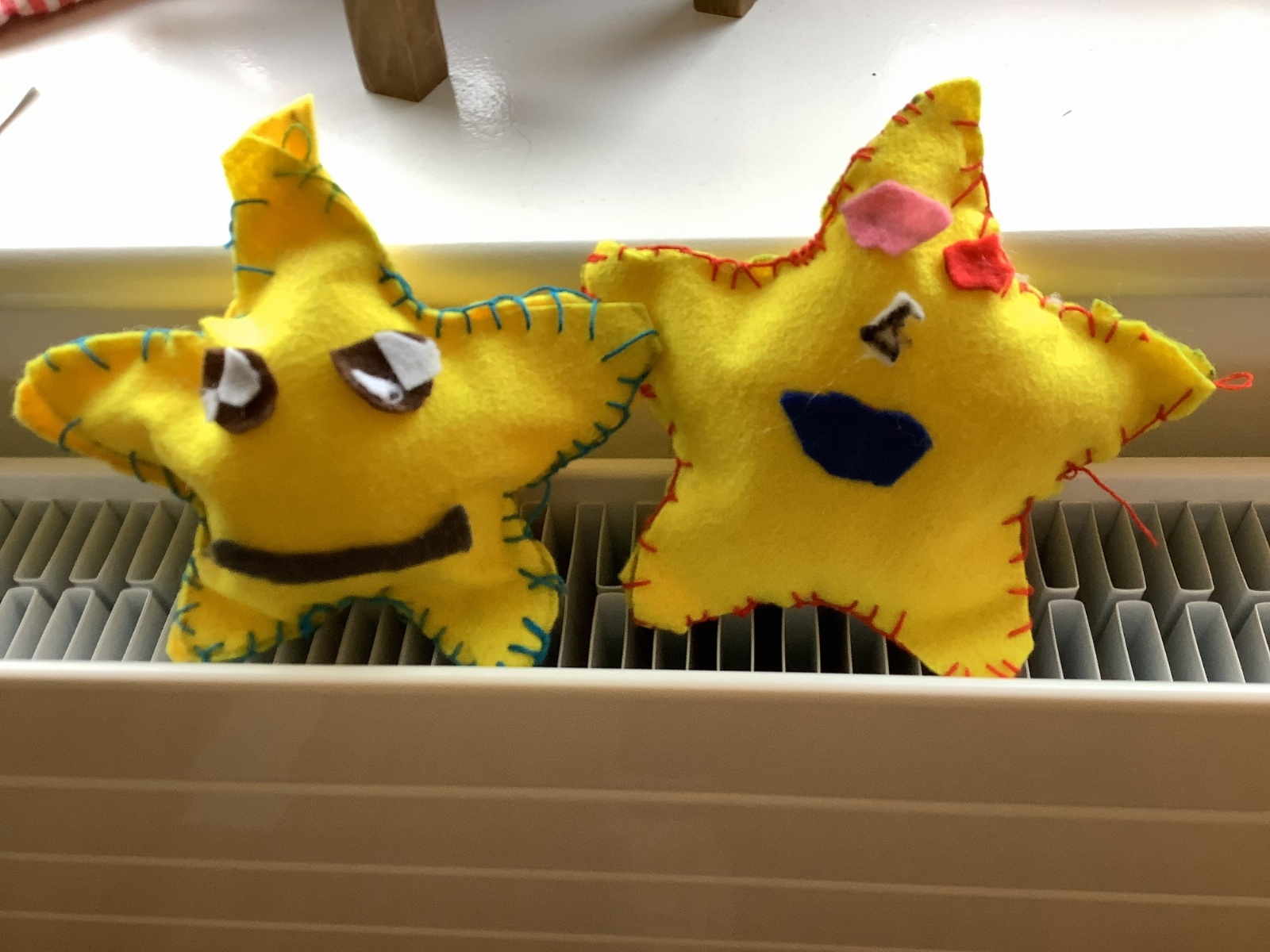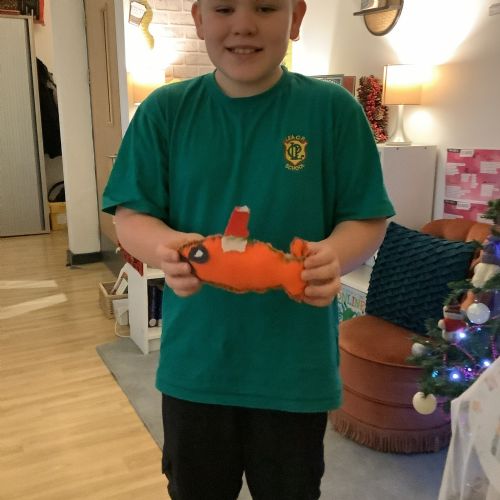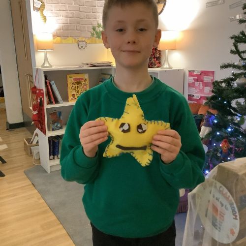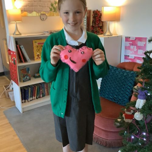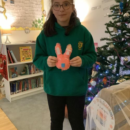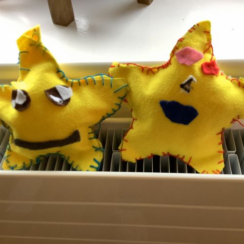 We made our own soft toy by using a blanket stitch to attach two pieces of material together.
