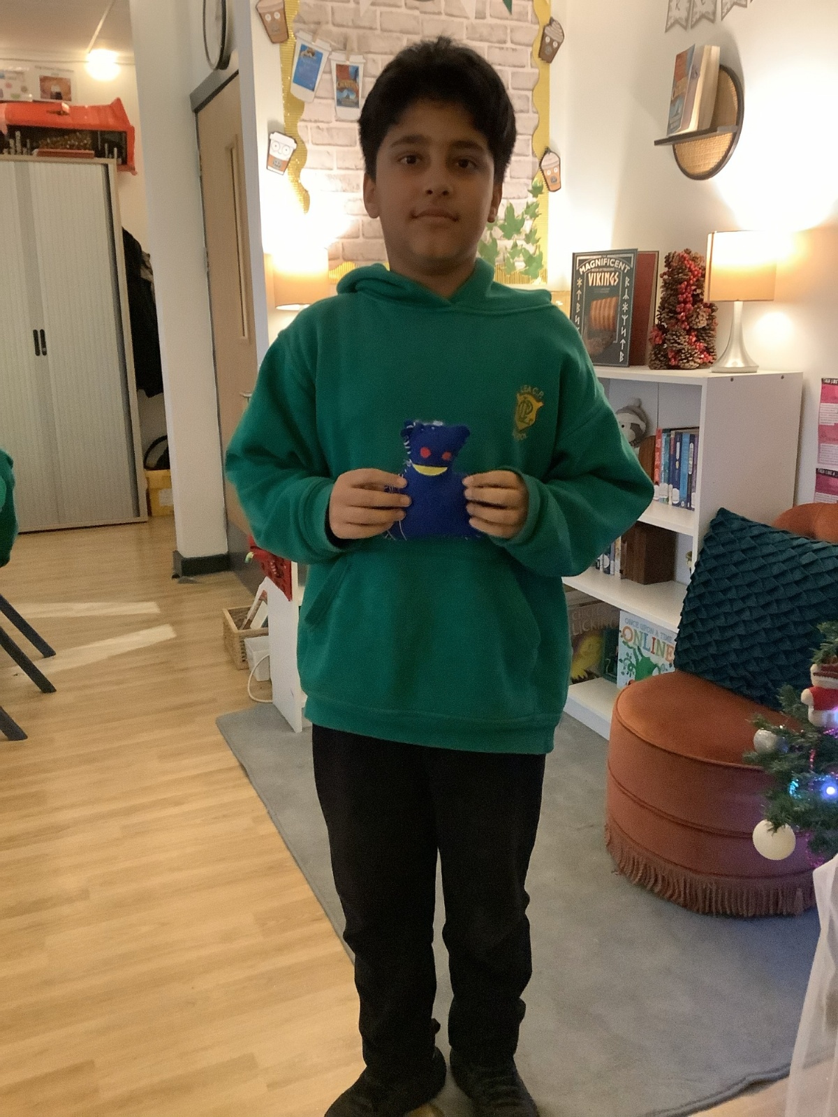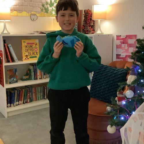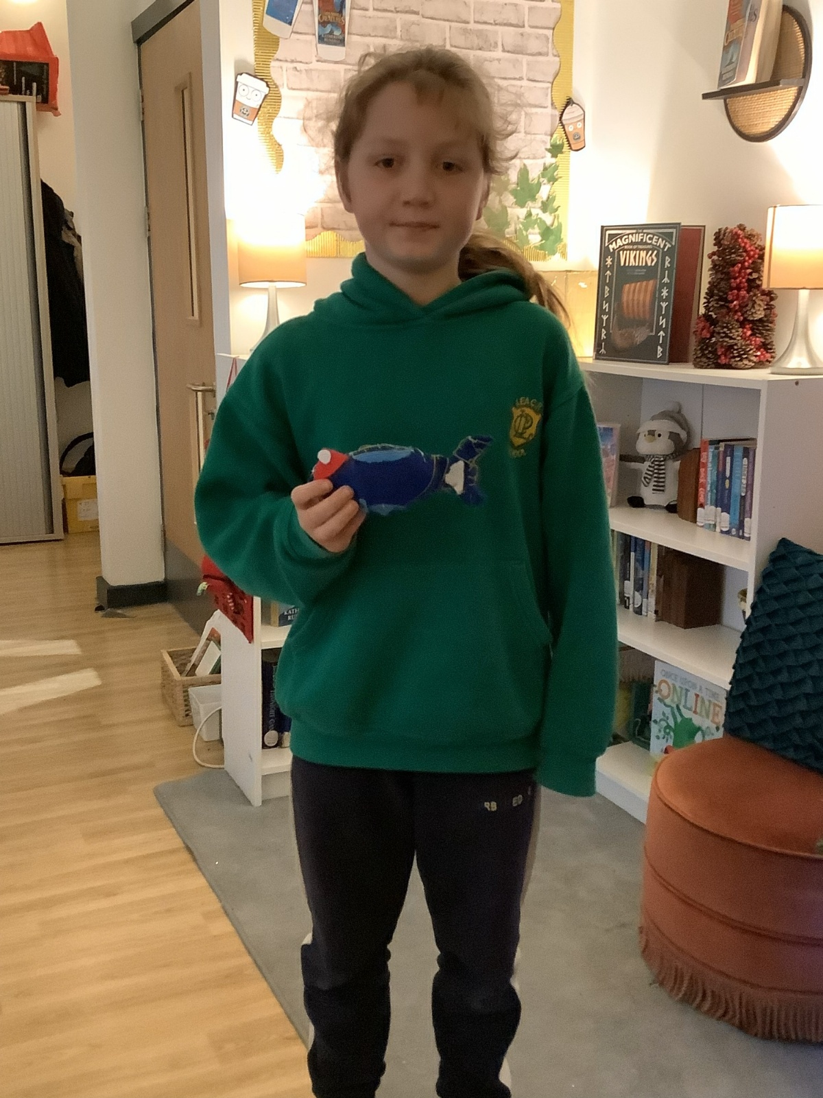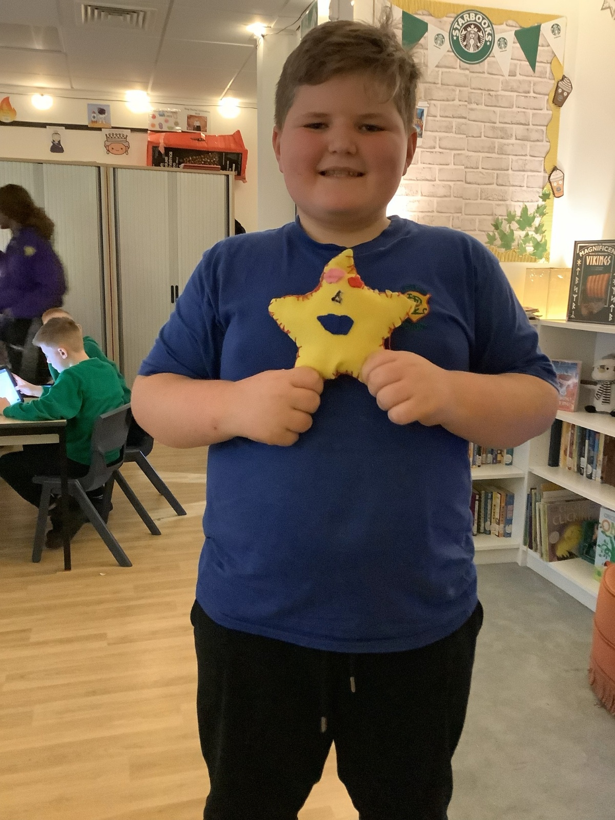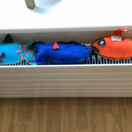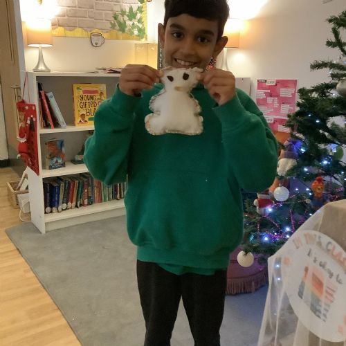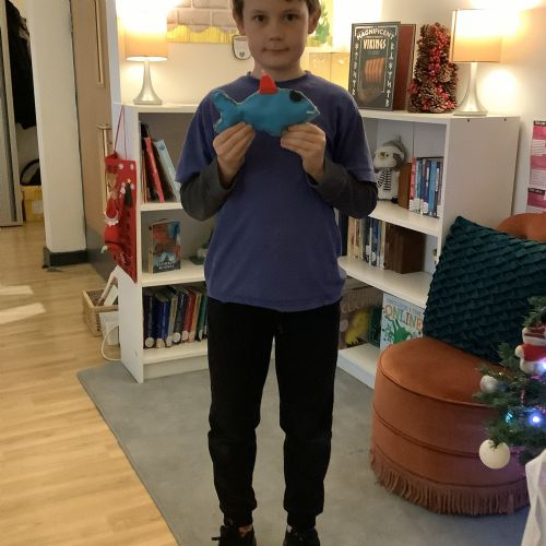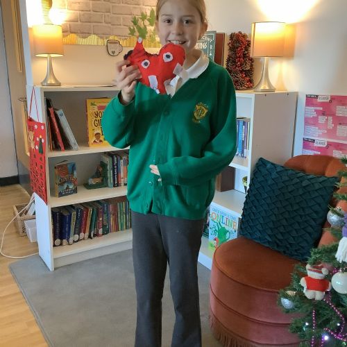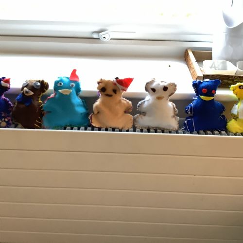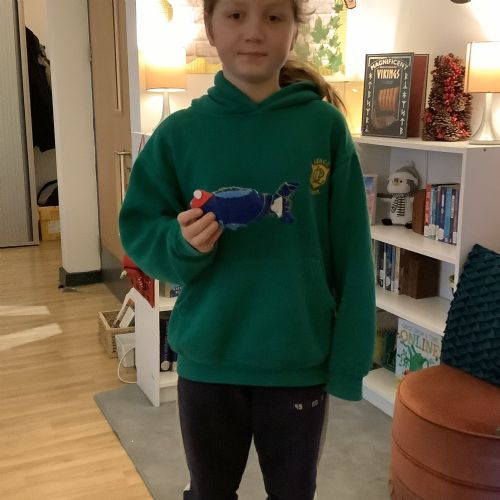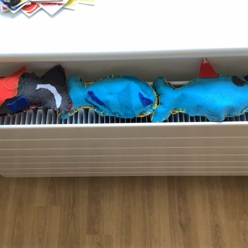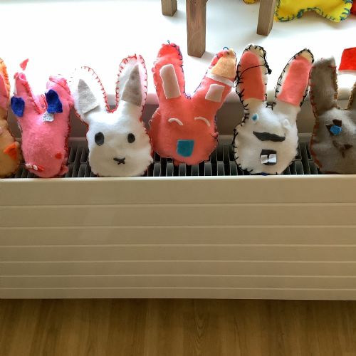 We made our own soft toy by using a blanket stitch to attach two pieces of material together.