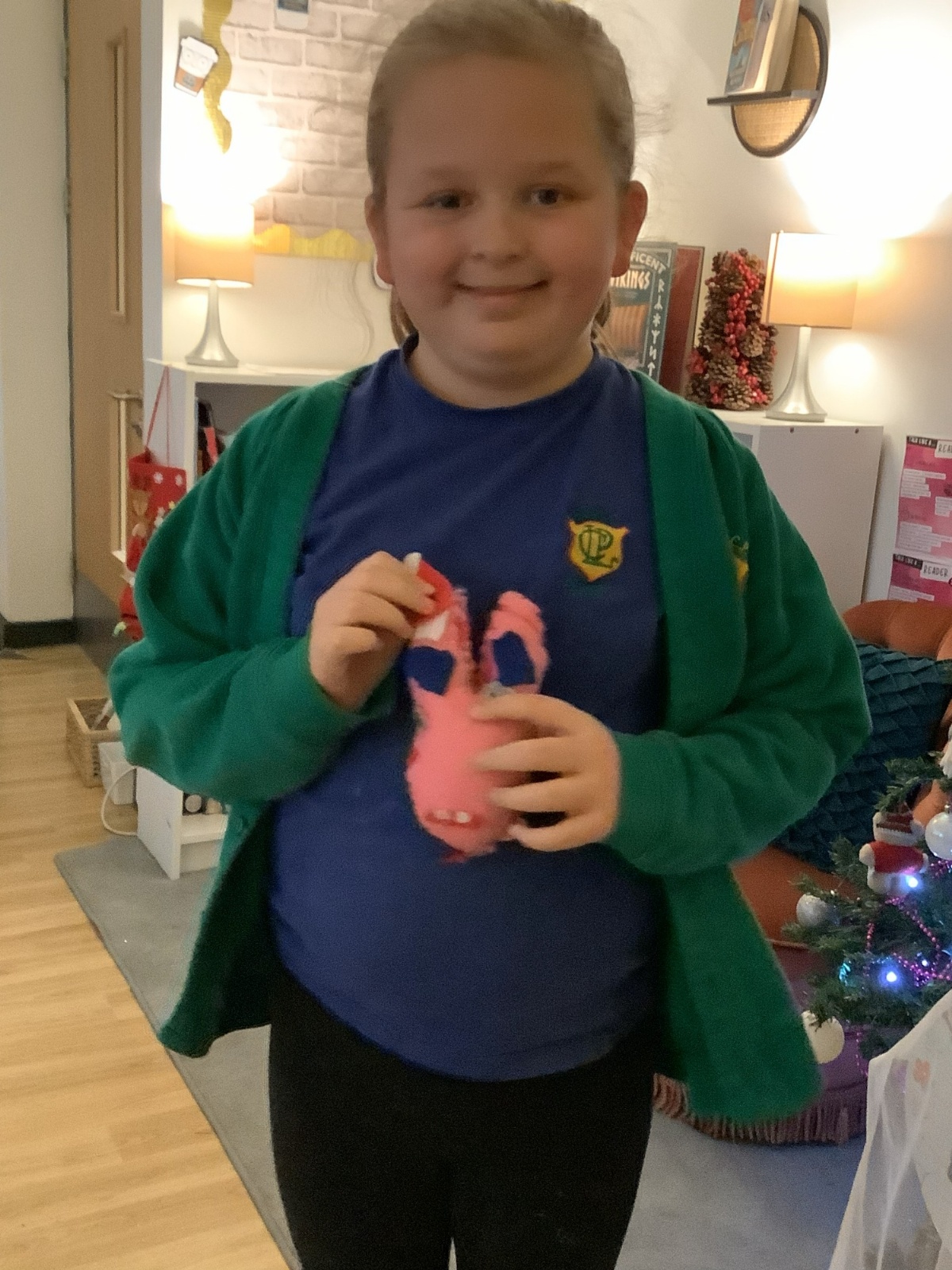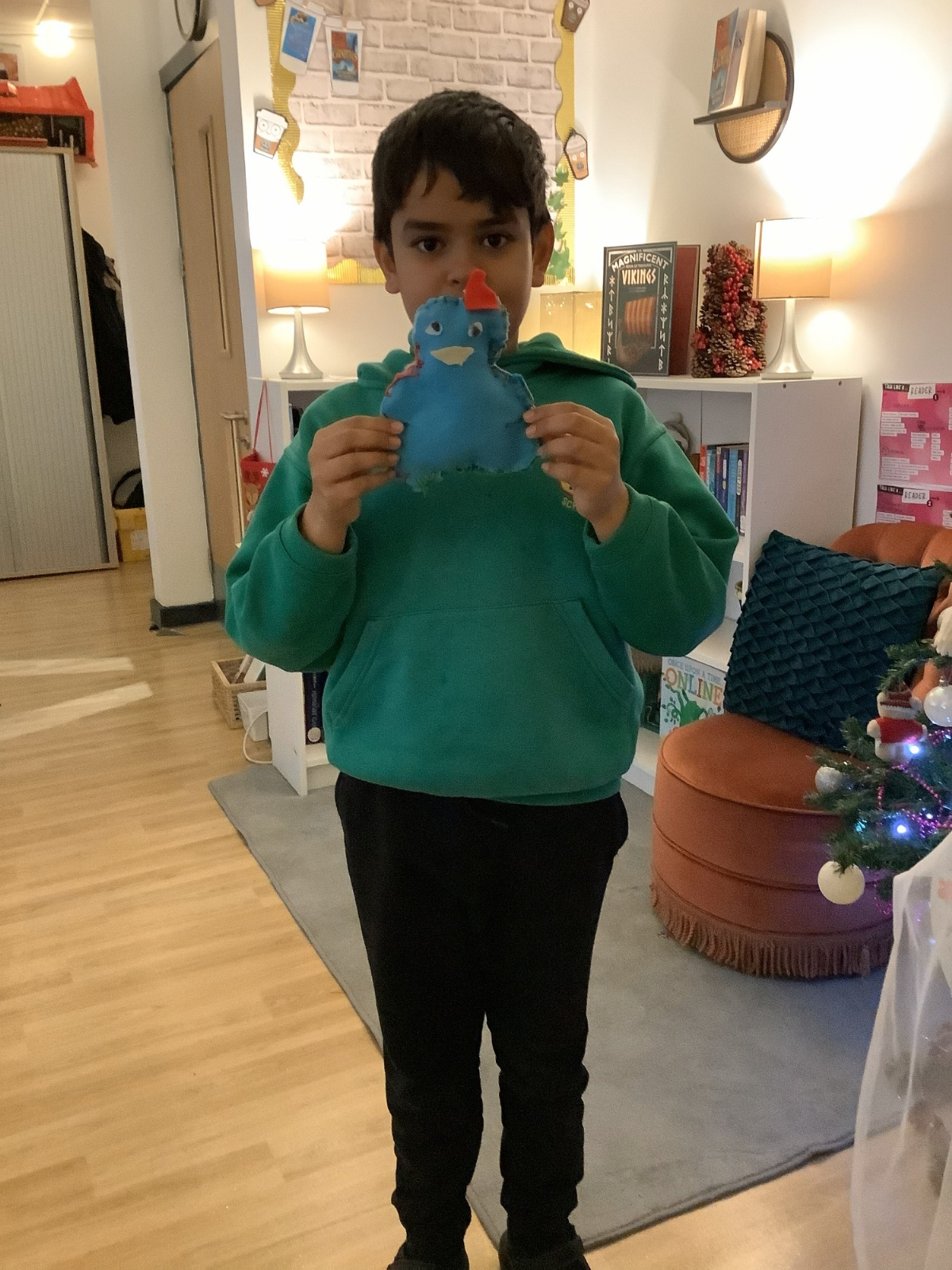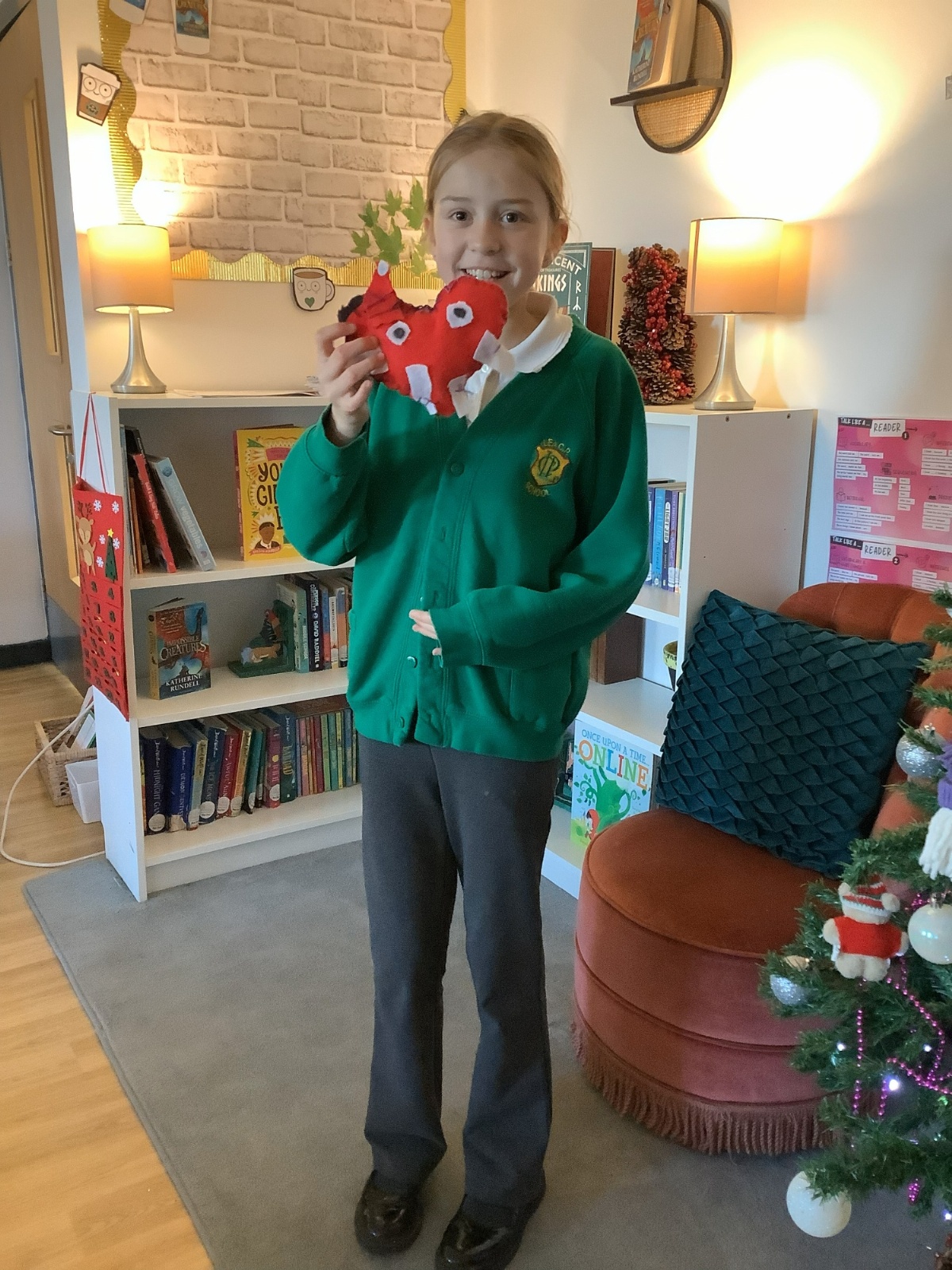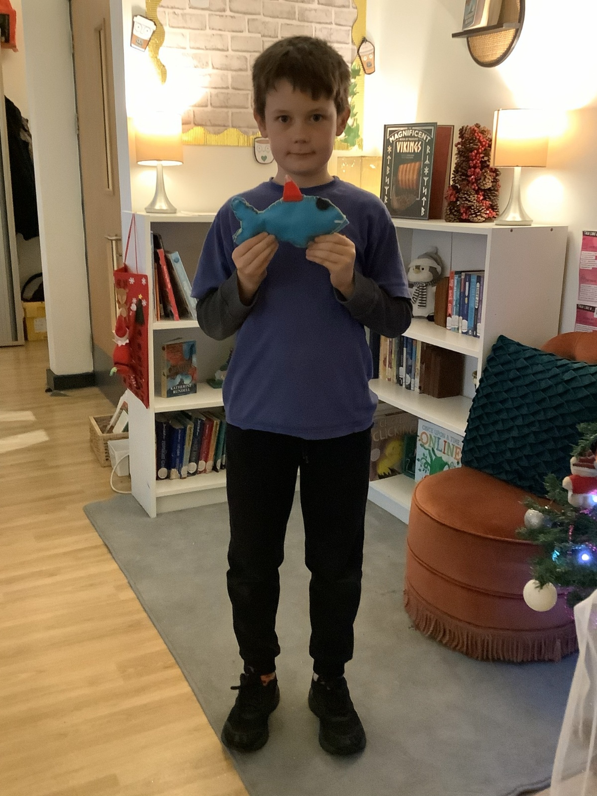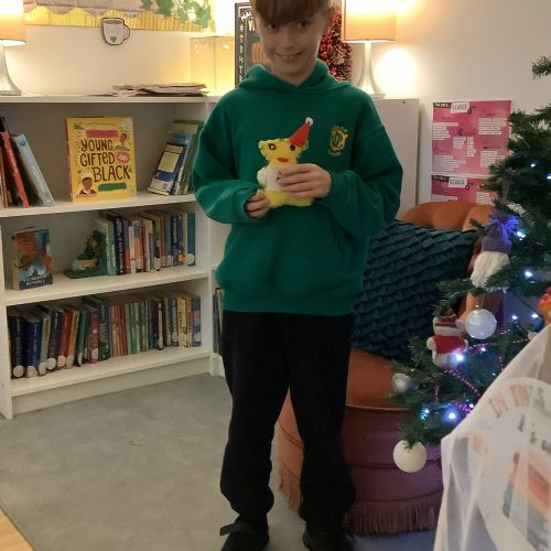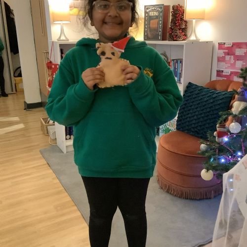 We made our own soft toy by using a blanket stitch to attach two pieces of material together.