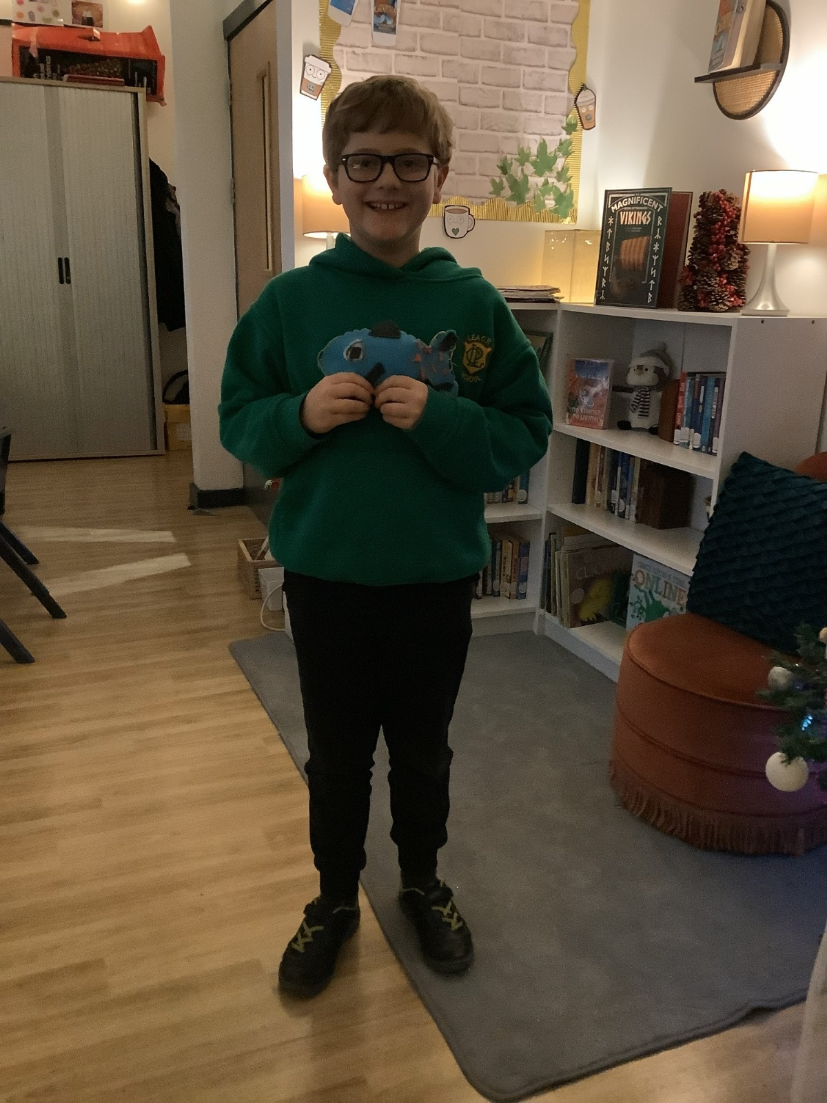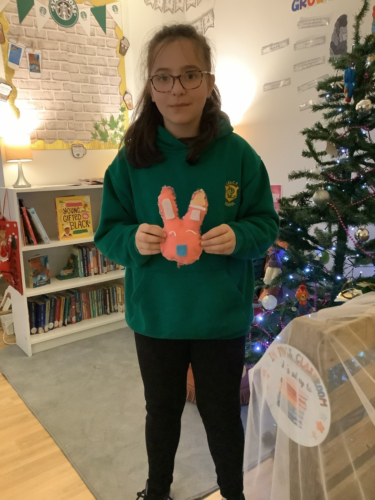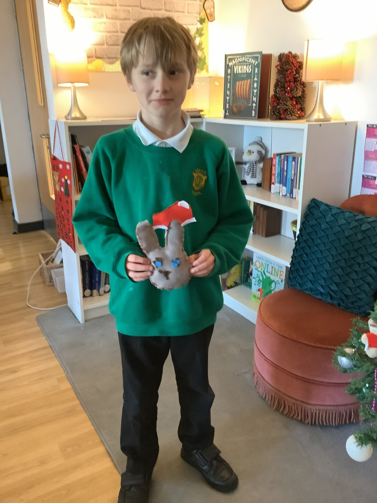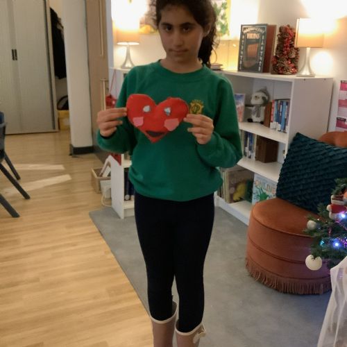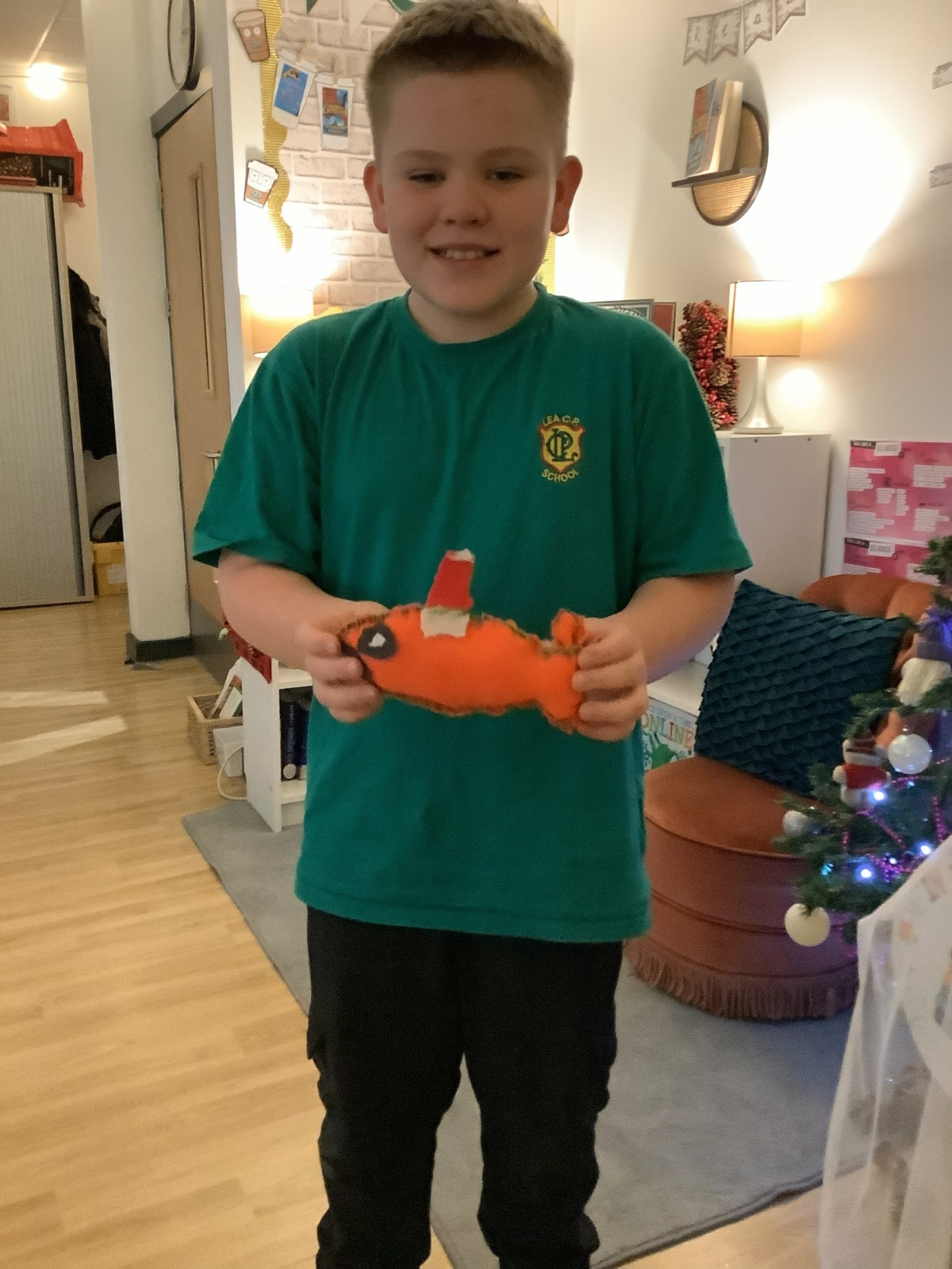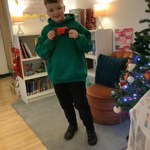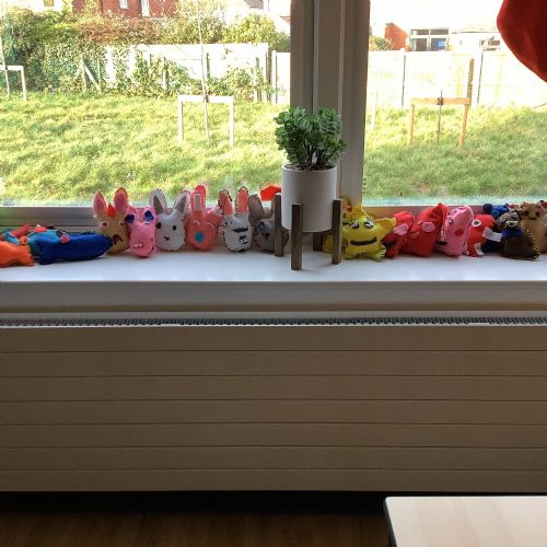 We made our own soft toy by using a blanket stitch to attach two pieces of material together.