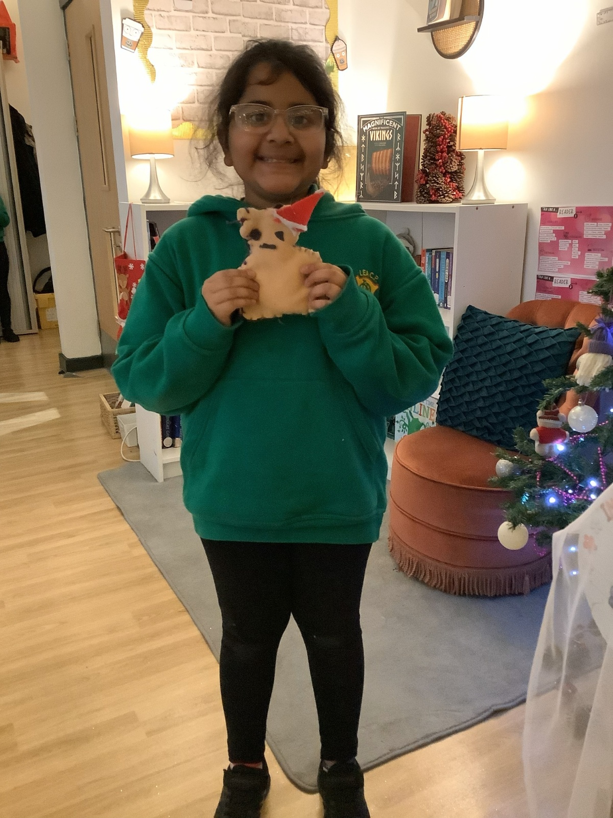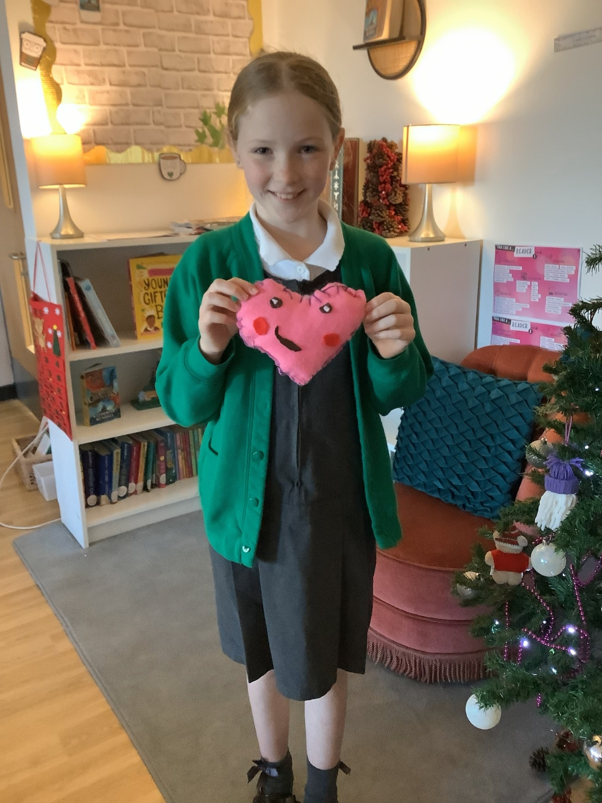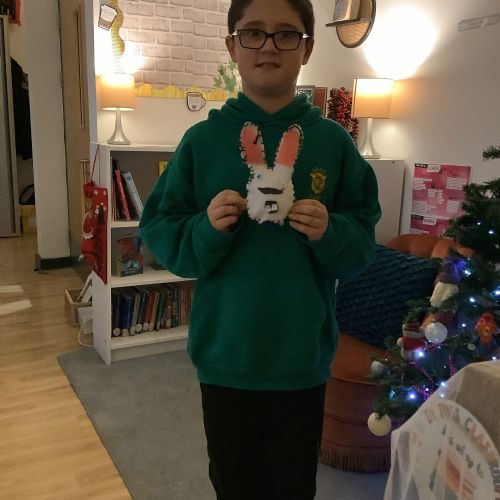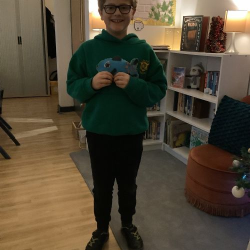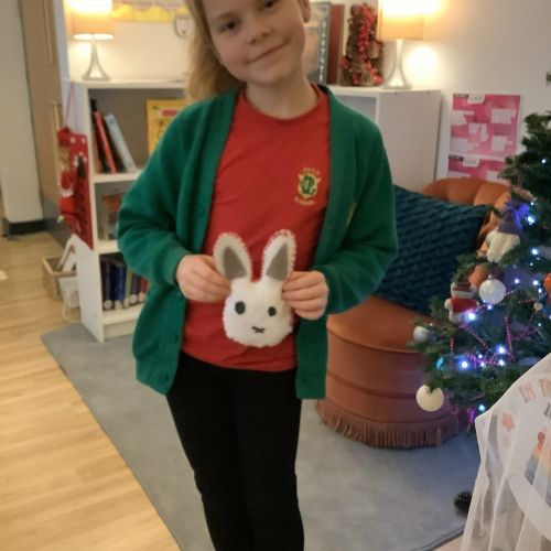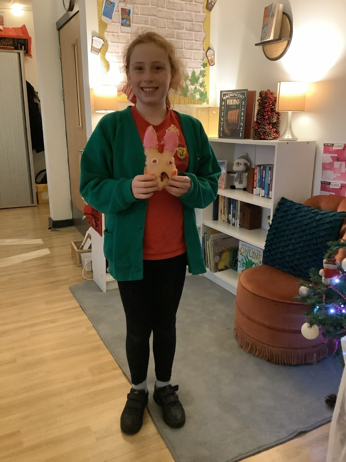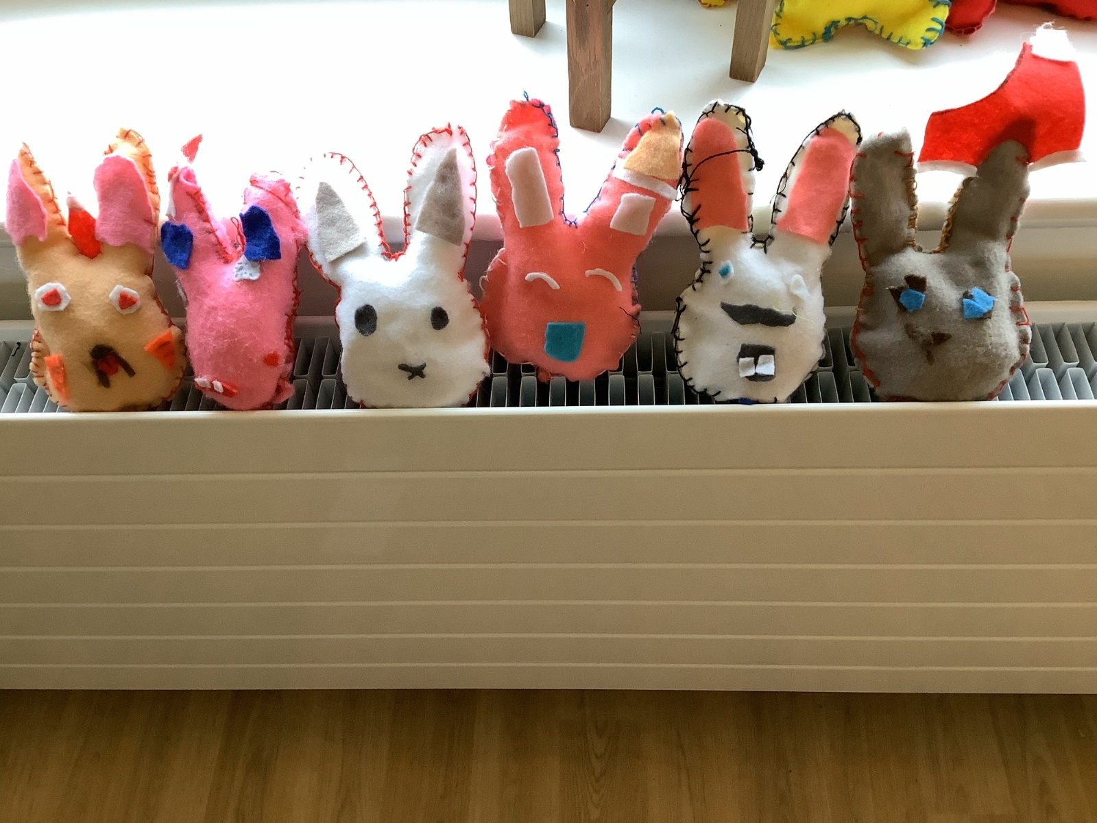 We made our own soft toy by using a blanket stitch to attach two pieces of material together.