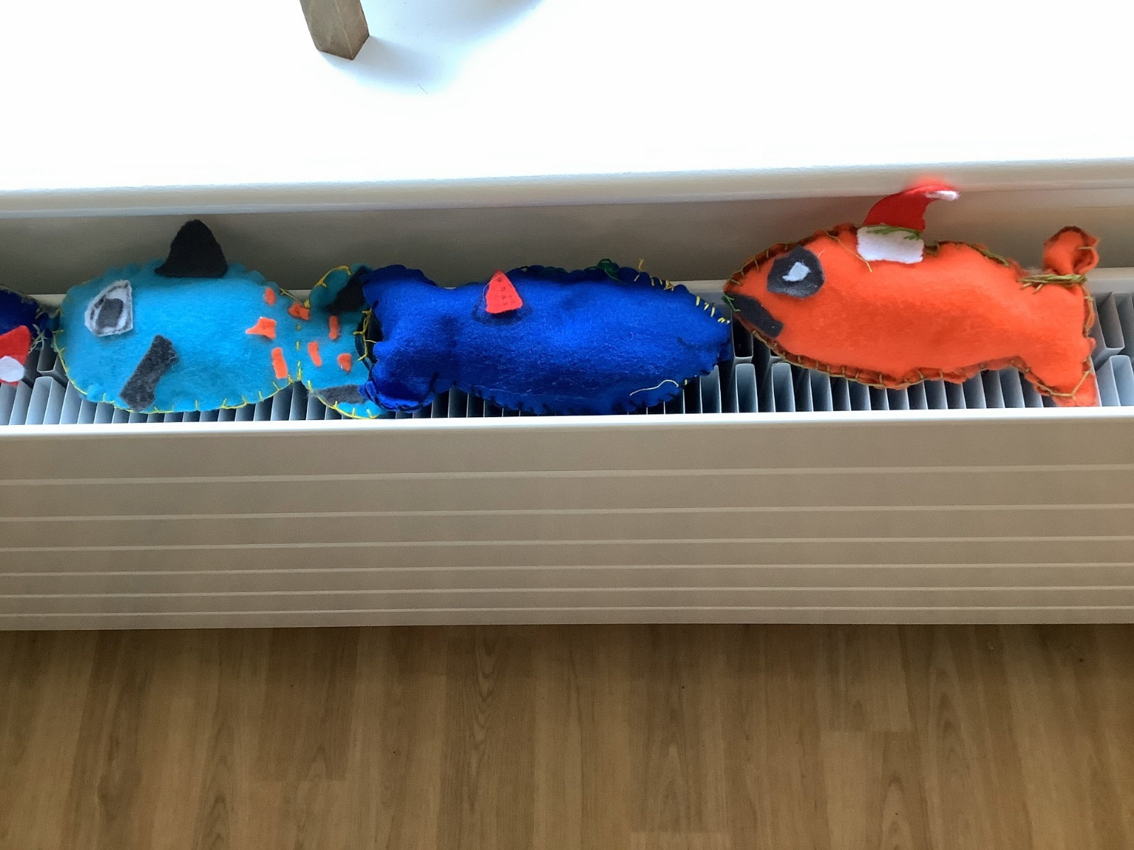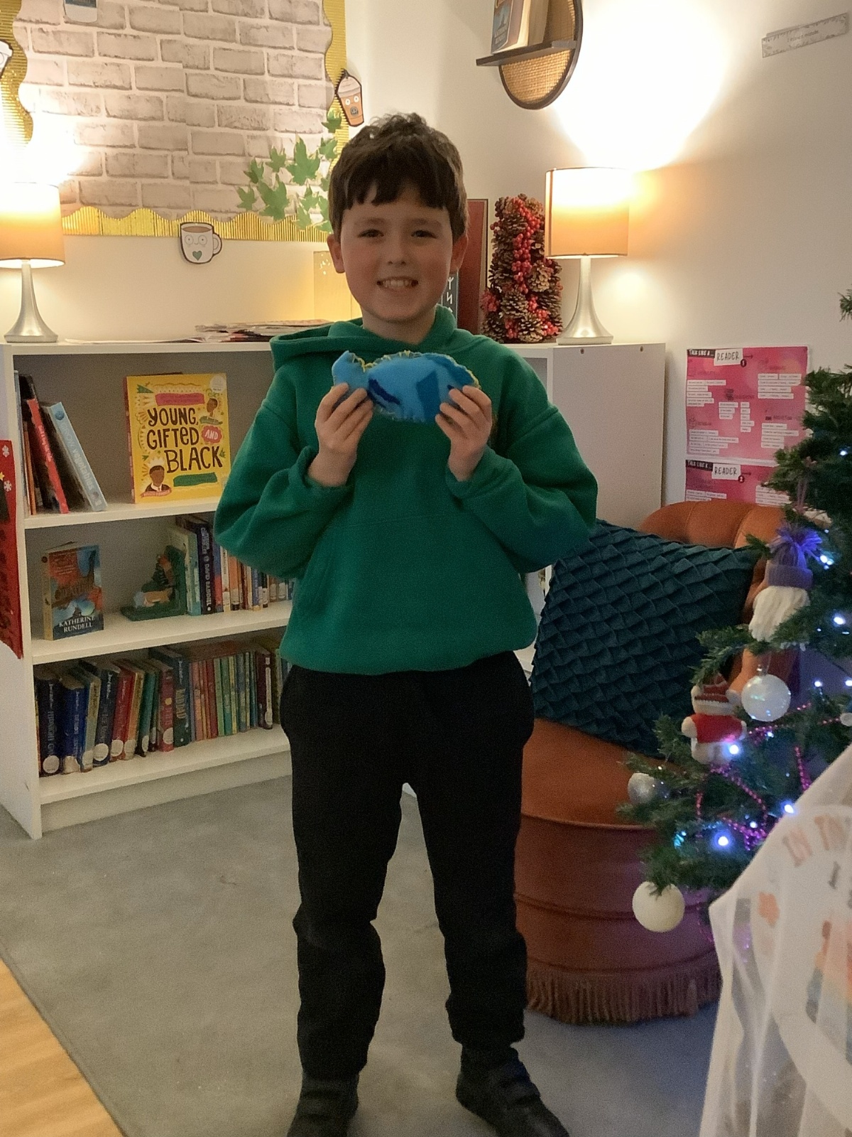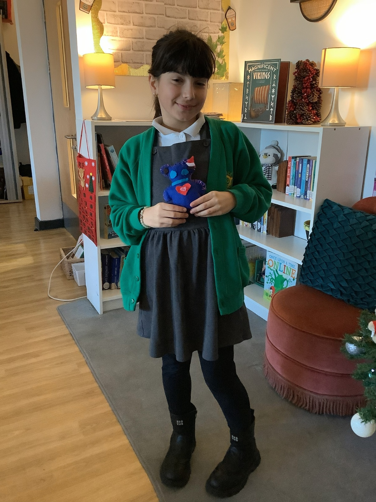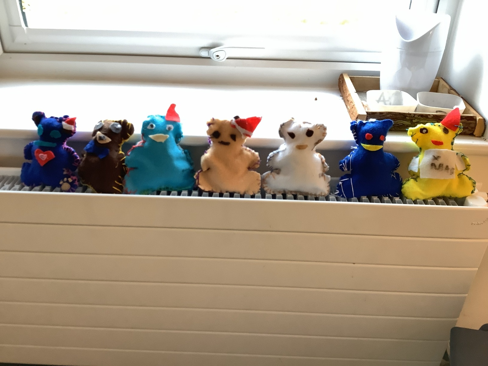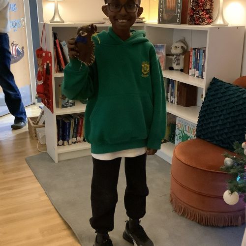 We made our own soft toy by using a blanket stitch to attach two pieces of material together.