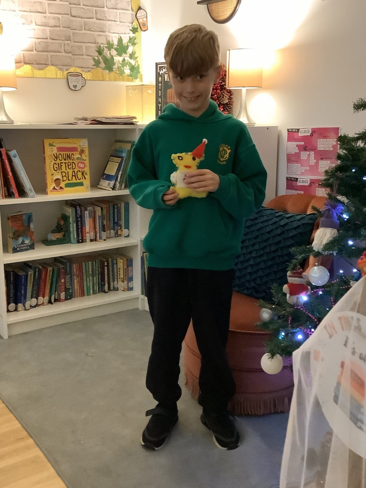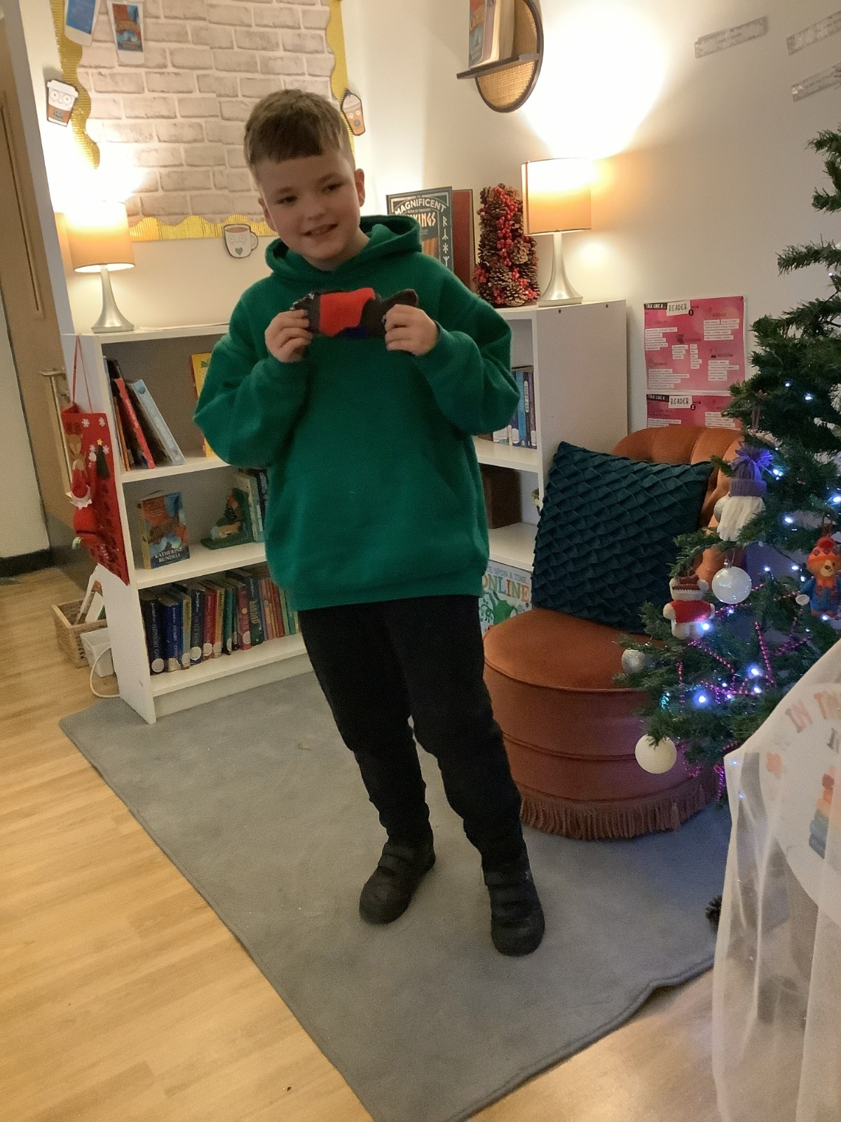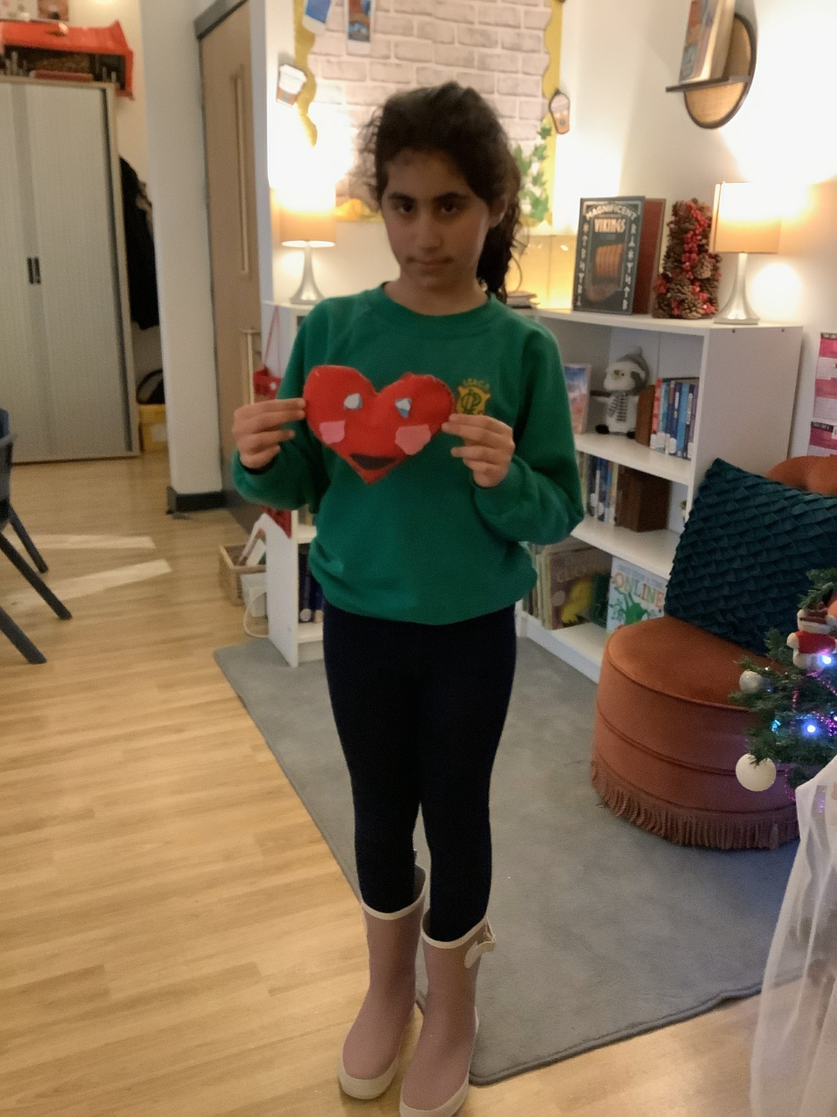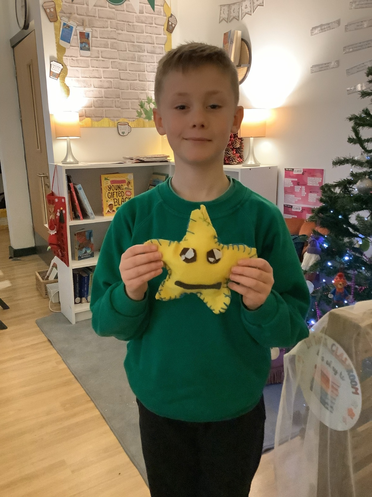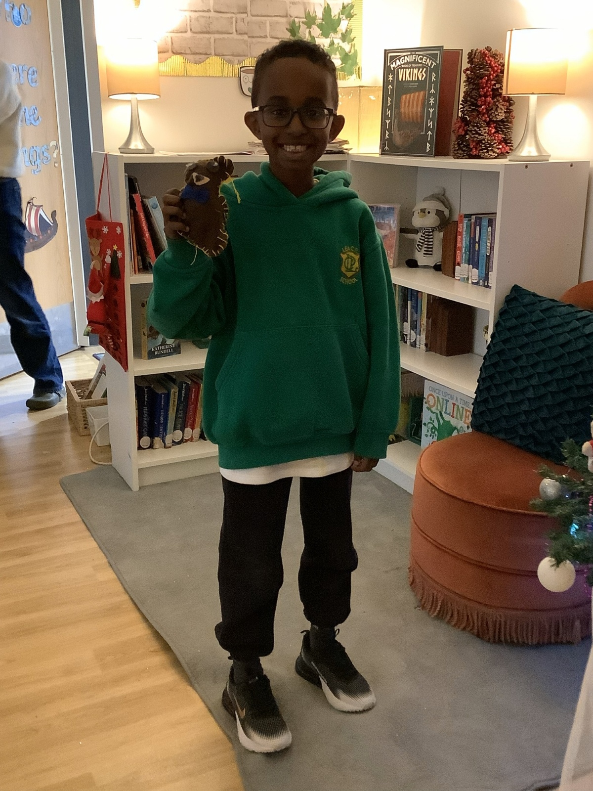 We made our own soft toy by using a blanket stitch to attach two pieces of material together.